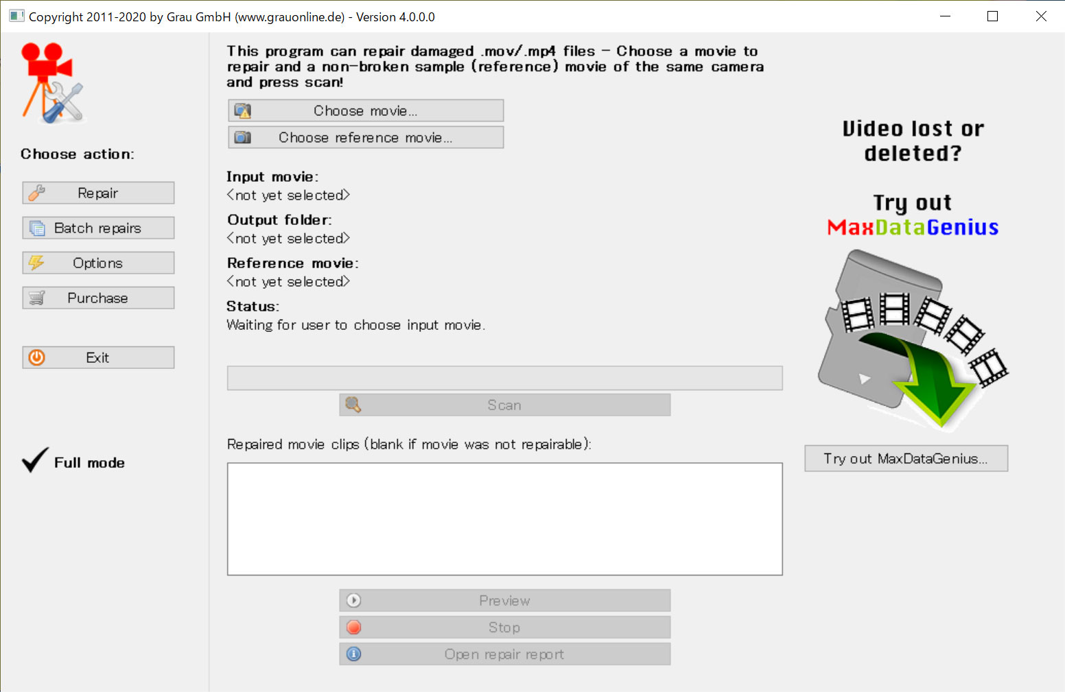 ということでネットで解決策を探り「Video Repair」という若干怪しい雰囲気があるソフトを見つけ試してみることとなりました。